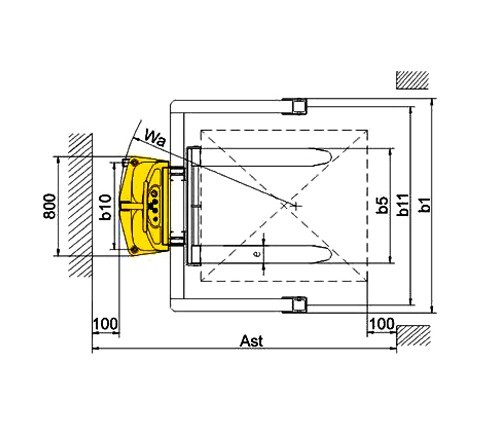 通道寬度,托盤1000×1200(1200跨貨叉放置)(Ast) |