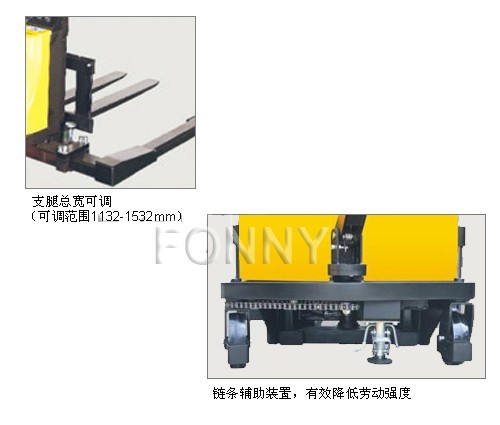 • 可高節貨叉可降至與支腿同等高度;