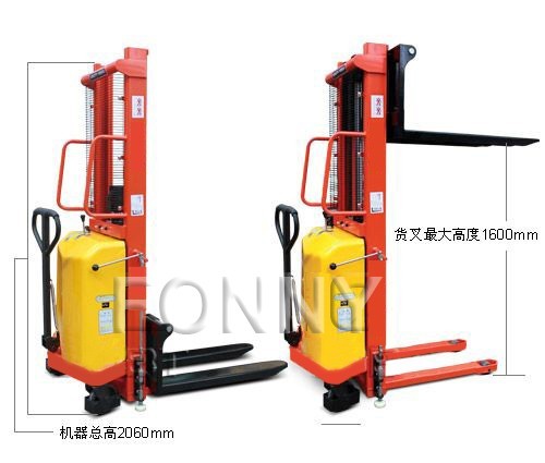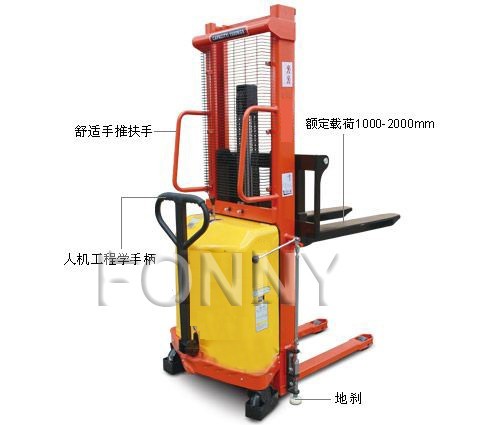 • 單門架結構設計,是一種具有裝卸和短距離運輸貨物功能的兩用半電動叉車,具有操作舒適、穩定性高、操作簡便、噪音低、故障率低等特點;