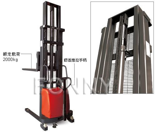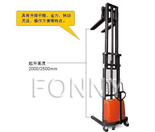 • 具有裝卸和短距離運輸貨物功能的兩用半電動堆高車;