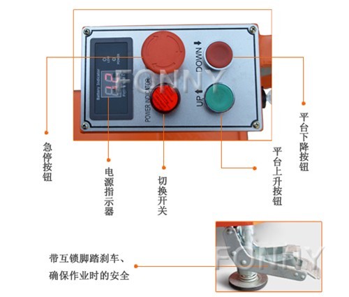 • 安全檢修支撐座 • 緊急下降按鈕