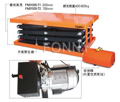 • 臺面下方配有安全檔條裝置,當臺面下降遇到障礙物停止下降,確保安全;