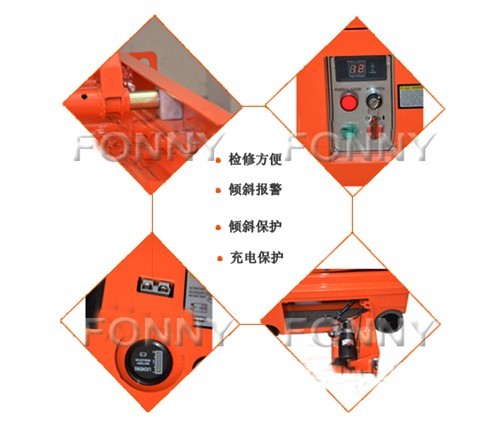 • 比例控制 • 平臺自鎖門 • 單向延伸平臺 • 全高度行走 • 無痕輪胎