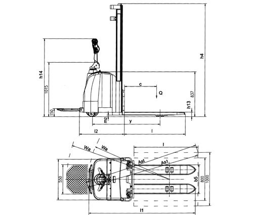 通道寬度,帶1.0×1.2m托盤(pán)(Ast ) |