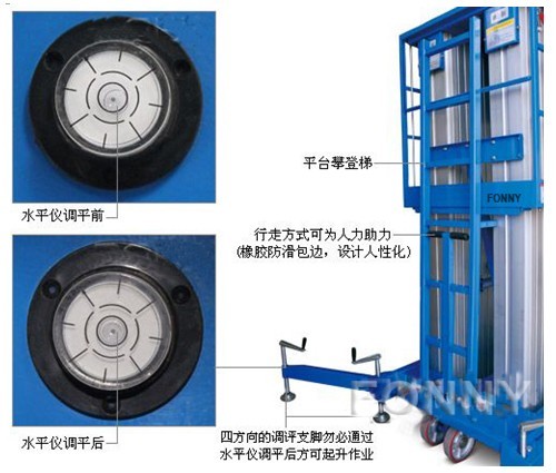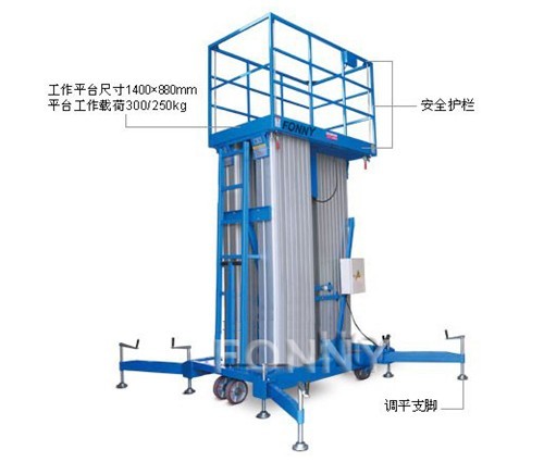 • 緊急下降系統(tǒng):在斷電或其他故障時(shí),可以啟有緊急下降開關(guān),降下平臺(tái)。