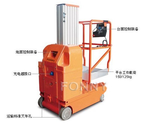 • 小的轉彎半徑(0°)及較小的尺寸(1.4m×0.82m)方便在狹小的空間作業;