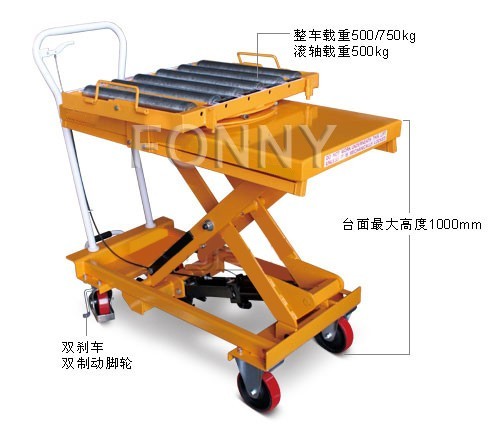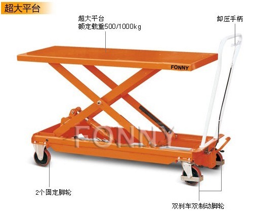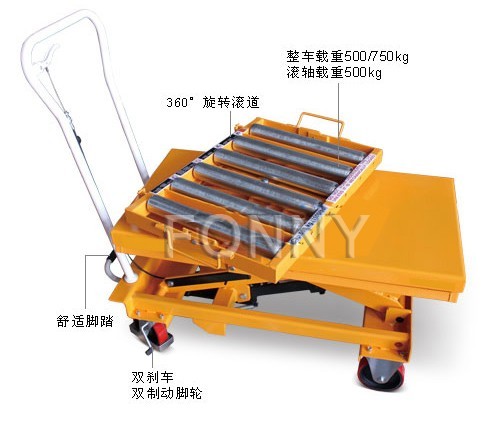 • 通過腳踏式液壓泵工作,方便地使平臺起升至所需高度;